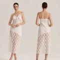 Featuring slim spaghetti straps and a graceful mid-calf length, this gown is the perfect mix of minimalism and allure. Its seamless design enhances your natural curves without clinging, while the flowy drape adds a hint of sophistication that never goes out of style.